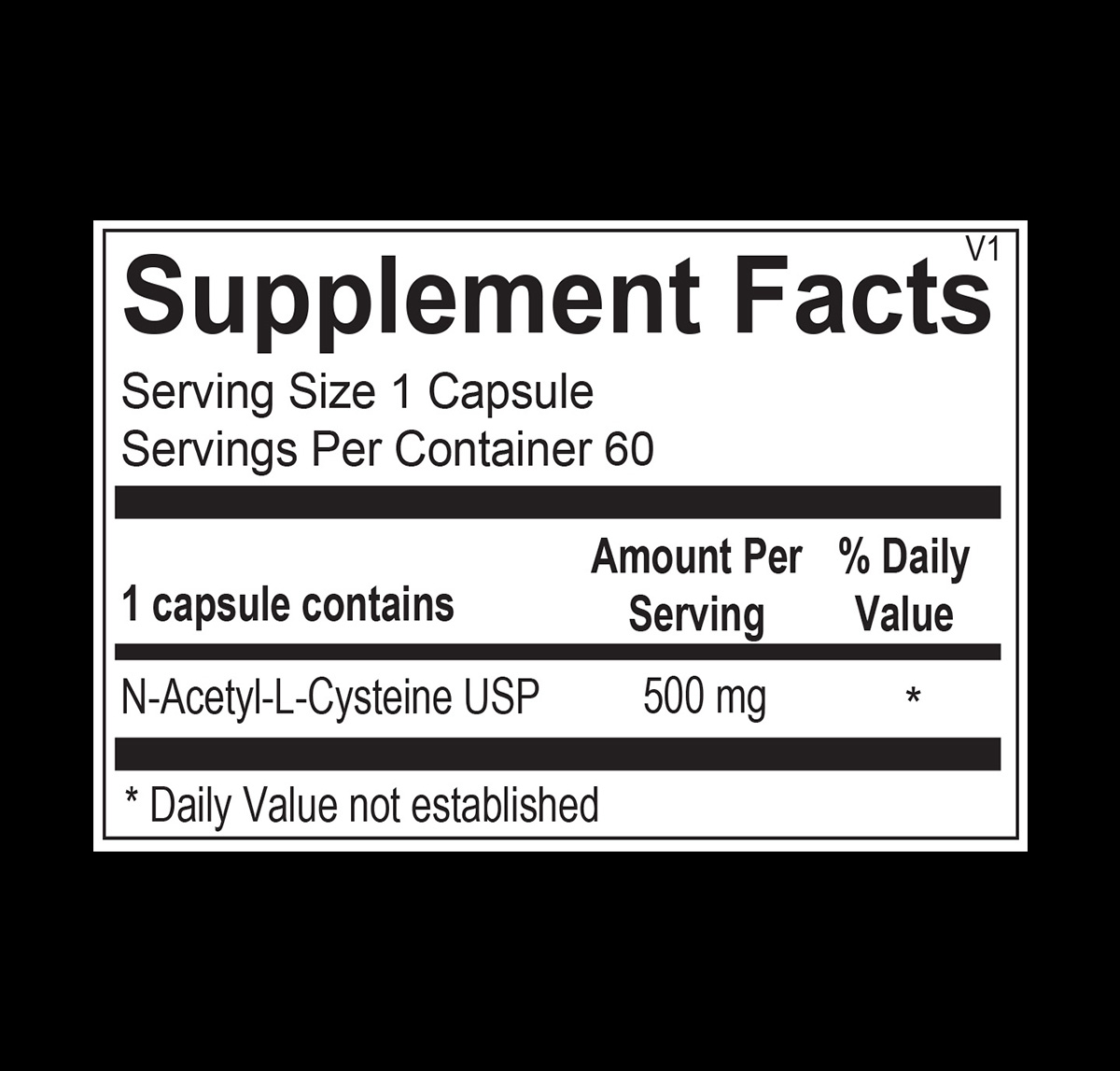 Each capsule of the N-Acetyl Cysteine formulation includes 500 mg of this versatile amino acid.