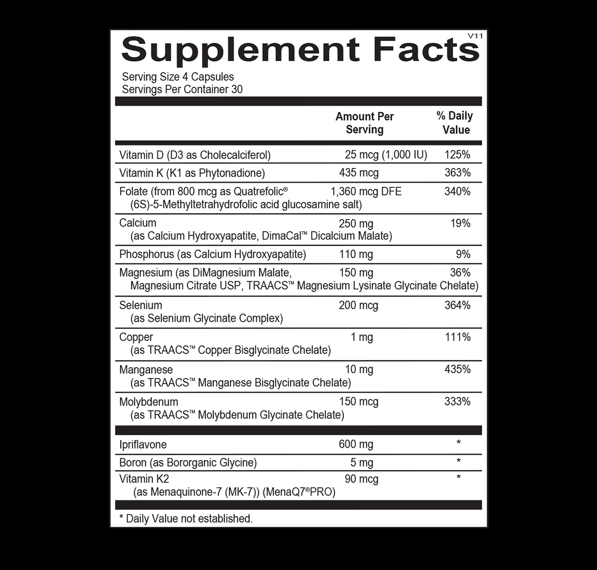 Bone mineral density (BMD) is a major determinant of bone mass and is the most commonly measured quality of bone. A number of factors contribute to BMD including lifestyle factors (regular physical activity, not smoking, minimizing stress levels) and maintaining hormonal balance. Consuming a healthy diet and ensuring optimal levels of bone-building vitamins and minerals are key strategies for preserving bone strength. Osteo Plus is a formulation specifically designed to promote healthy bone density. Osteo Plus contains Albion® TRAACS® chelated minerals for enhanced bioavailability including calcium, magnesium, copper, manganese and molybdenum. Osteo Plus also includes vitamins D and K and phytonutrients to support bone health and increase skeletal strength.
