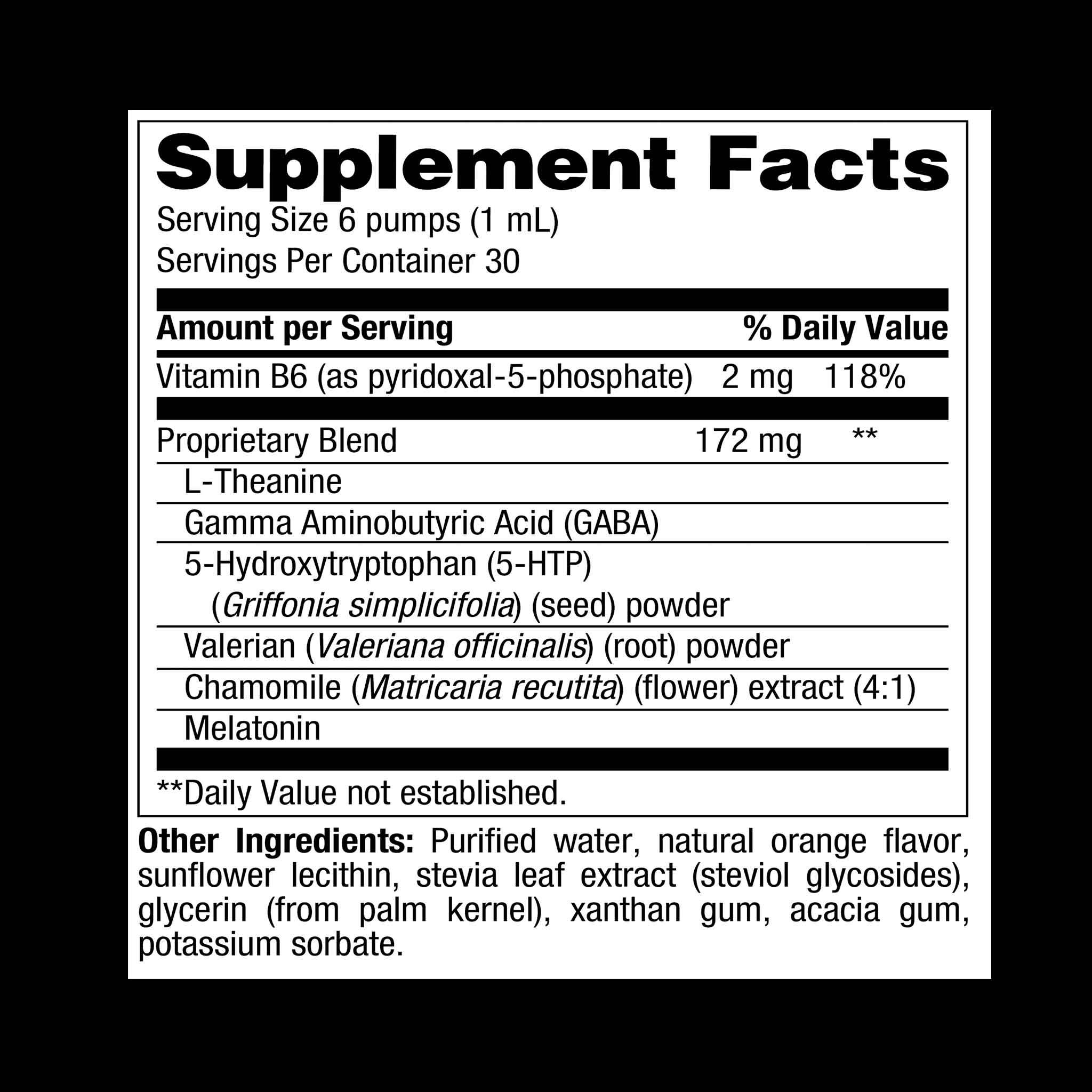GABA (50 mg), 5-HTP and Melatonin (2 mg) along with supporting botanical