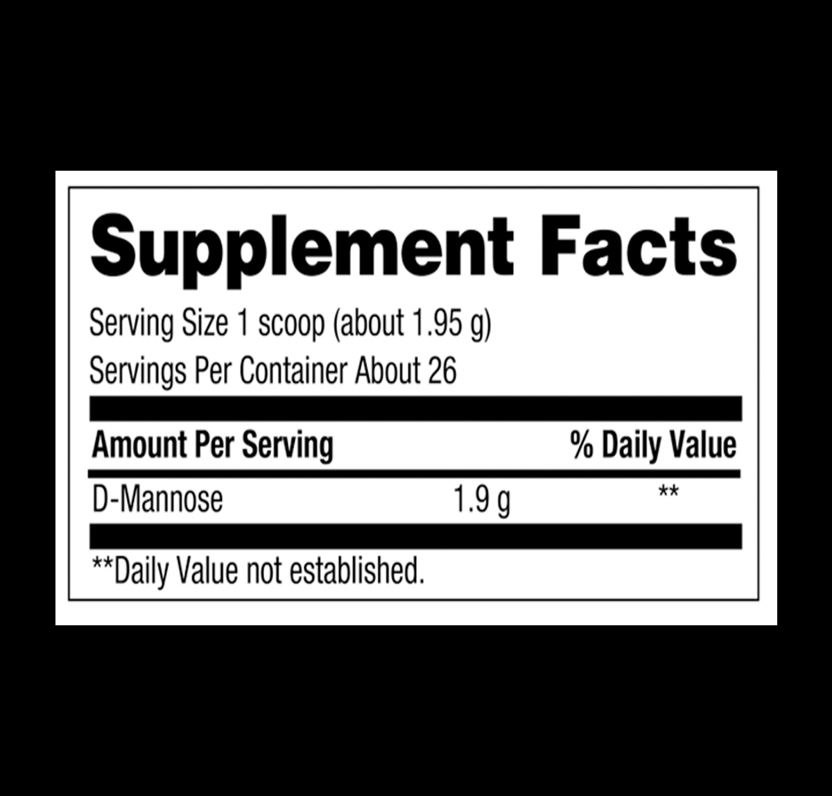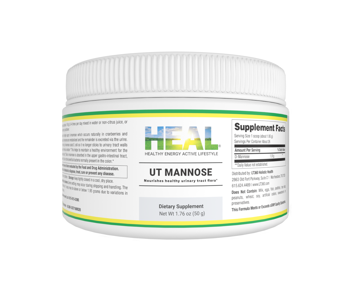 UT Mannose features the simple sugar d-mannose which occurs naturally in cranberries and pineapple. Tiny amounts of d-mannose are metabolized and the remainder is excreted via the urine. As it is flushed from the body, d-mannose coats E. coli so it no longer sticks to urinary tract walls and is washed away with normal urination. This helps to maintain a healthy environment for the urinary tract’s mucosal surface. Since d-mannose is absorbed in the upper gastro-intestinal tract, it does not affect friendly E. coli or other beneficial bacteria normally present in the colon.